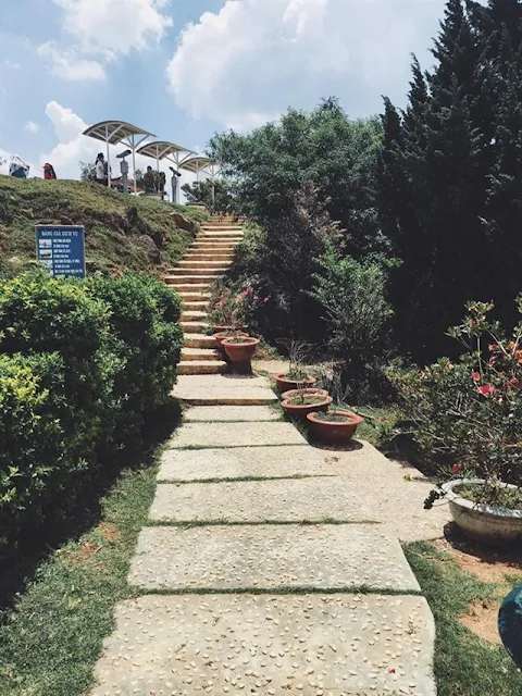 Ăn sáng xong, quay về khách sạn nhận xe và bắt đầu tham quan vòng vòng thành phố, sau đó di chuyển đi Langbian (Vé vào cổng 20k/người, Thuê xe zip 50k/người) tại đây, bạn thỏa sức tận hưởng không gian thoáng mát trong lành của thiên nhiên Đà Lạt.